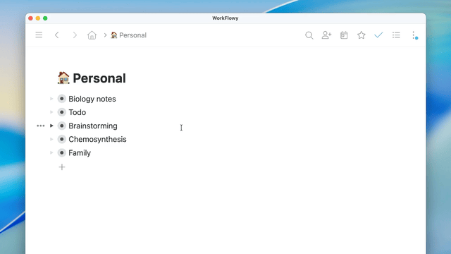 Shortcuts in Workflowy are custom text codes you assign to any bullet or saved search - like wm1 for “Weekly Meeting” or rd for “Reading List.” Once set, just type the shortcut into the Jump-To menu and go straight there. It’s the fastest way to navigate your outline, move or mirror content, and stay in flow - no scrolling, no searching, just instant access.