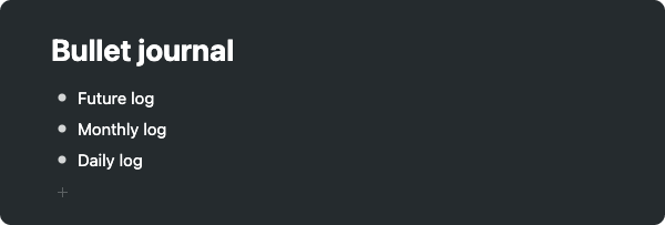 Let's start by adding those three section to a new bullet we'll call 'Bullet journal'.