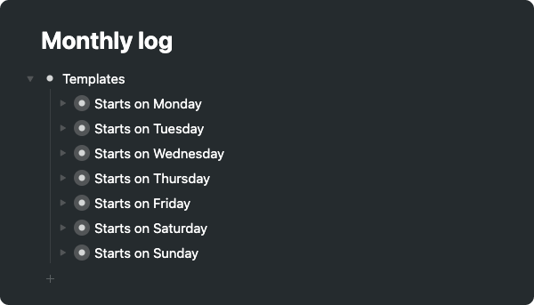 One last section we'll add is an 'archive' in the 'daily log' so you can move days there after each week or month. Otherwise you'll end up with a huge list of days as the year progresses.