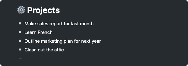 Next, we have a couple of items that are definitely multi-step, so let's add those under the 'Projects' section.