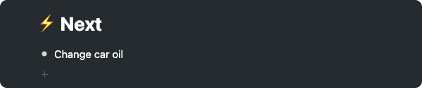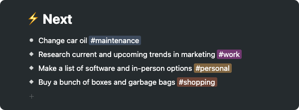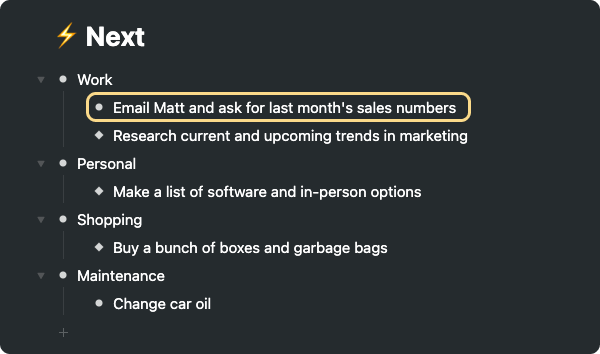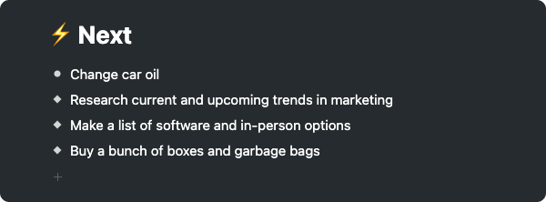 You'll also review your 'Next' section to make sure you've removed or crossed off any complete items.