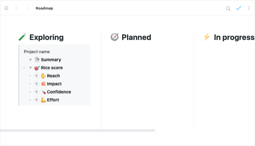We've also included a project template that uses the RICE prioritization method popularized by Intercom.